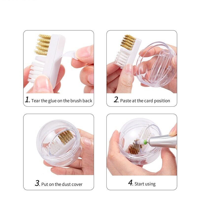 Với cấu tạo thông minh, hộp vệ sinh này cho phép gắn đầu mài trực tiếp lên lỗ cố định, sau đó dùng chổi hoặc khí nén thổi sạch bụi. Bạn cũng có thể ngâm trực tiếp đầu mài vào dung dịch sát khuẩn, không sợ thất lạc đầu mài như khi ngâm lỏng lẻo.